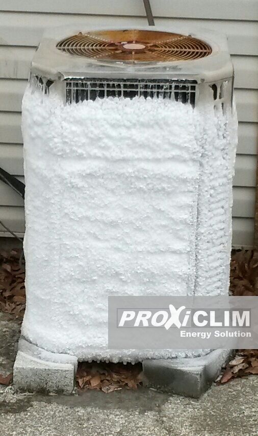 Le groupe extérieur de votre pompe à chaleur, clim réversible est couvert de glace.